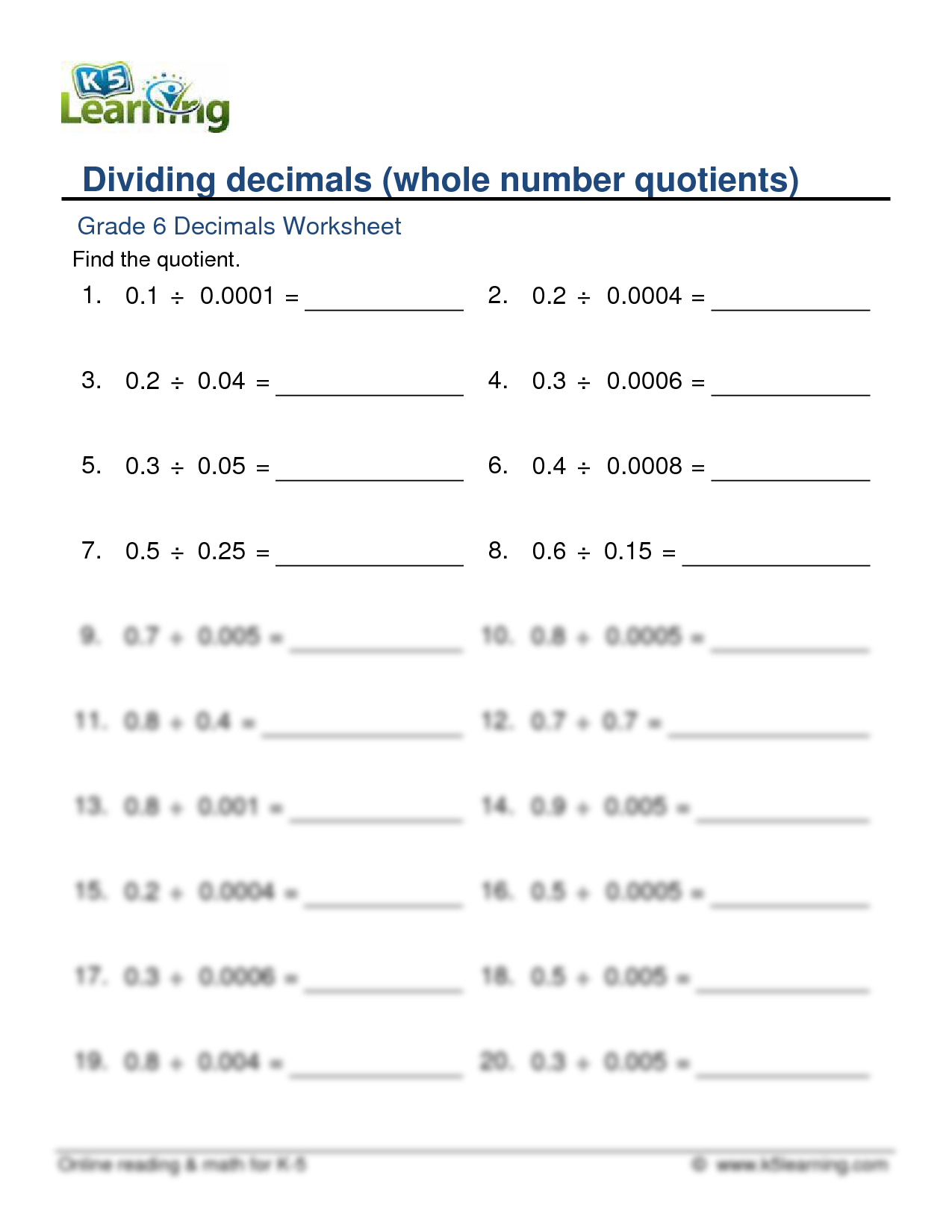 Common Core Math Worksheets Dividing Decimals CommonWorksheets