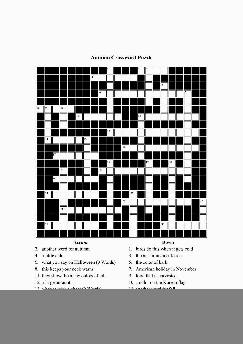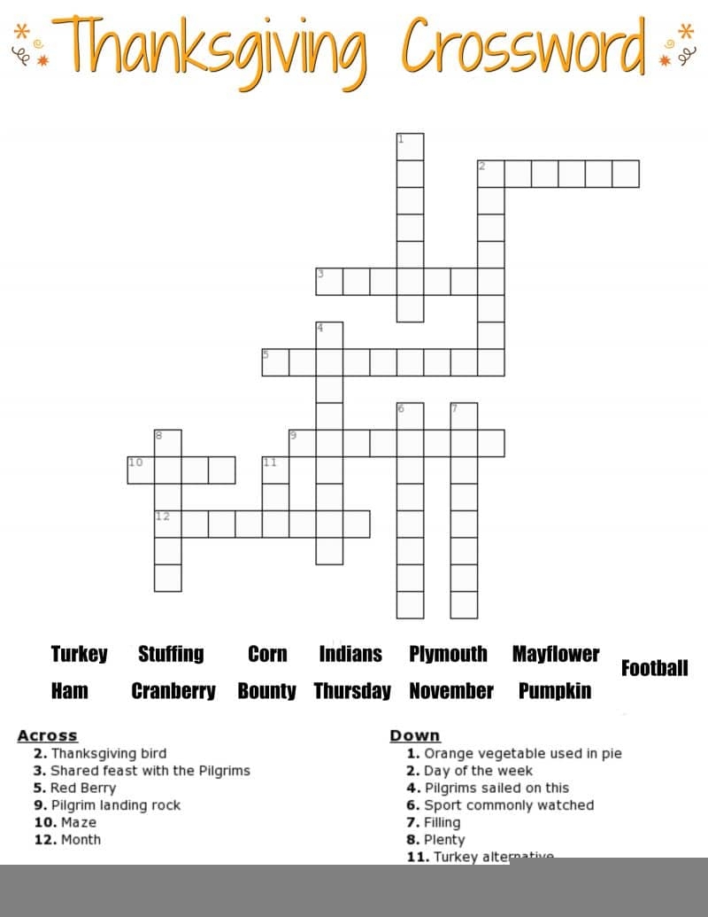 November Crossword Puzzles Printable