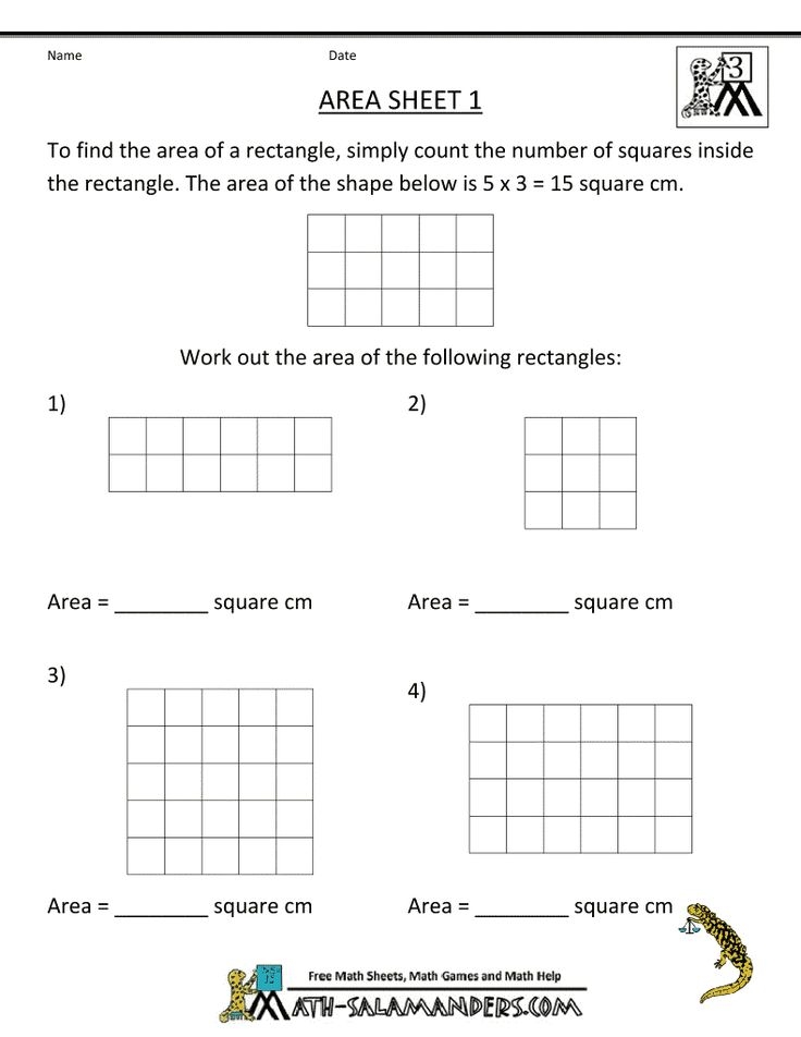 One common type of worksheet involves finding the area of rectangles. Students are given the length and width of a rectangle and are asked to multiply these two values to find the total area. These worksheets help students understand the relationship between length, width, and area, and provide them with ample practice to master this skill.