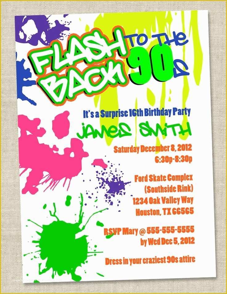 1. Neon Blast: This invitation template features bright neon colors and geometric shapes reminiscent of the 90’s rave scene. Customize the text with your party details and get ready to dance the night away like it’s 1999!