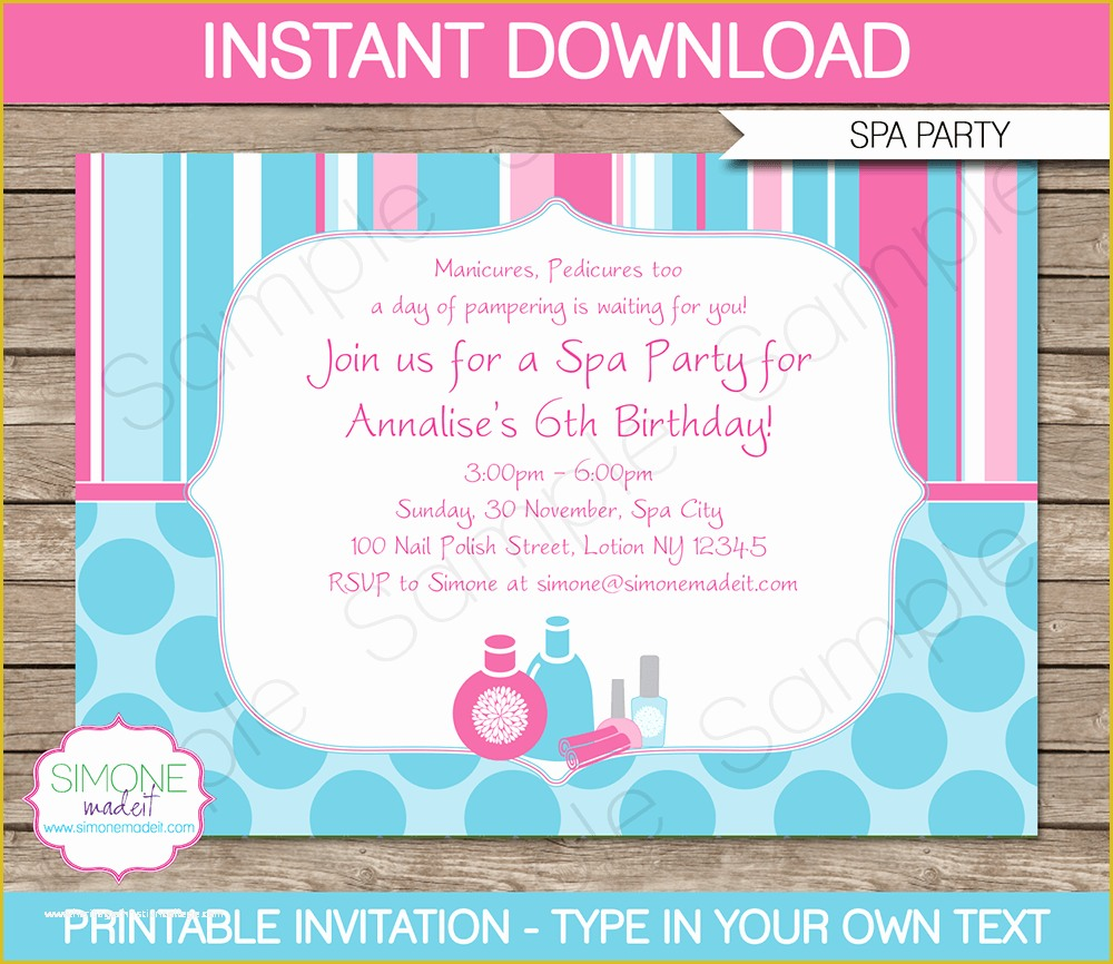 80 39 s Theme Party Invitation Templates Free Of Spa Party Invitations