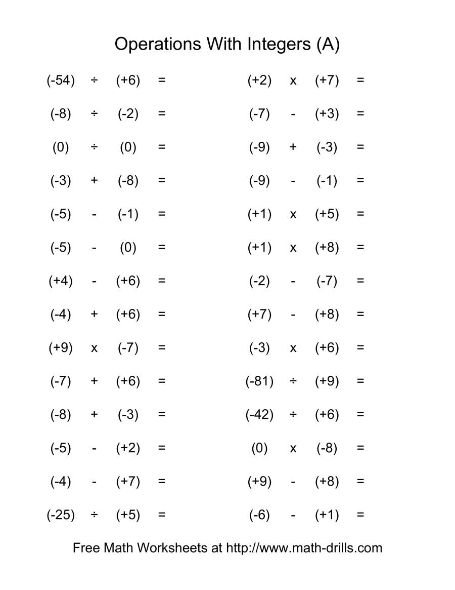 Adding Integers Worksheet PDF