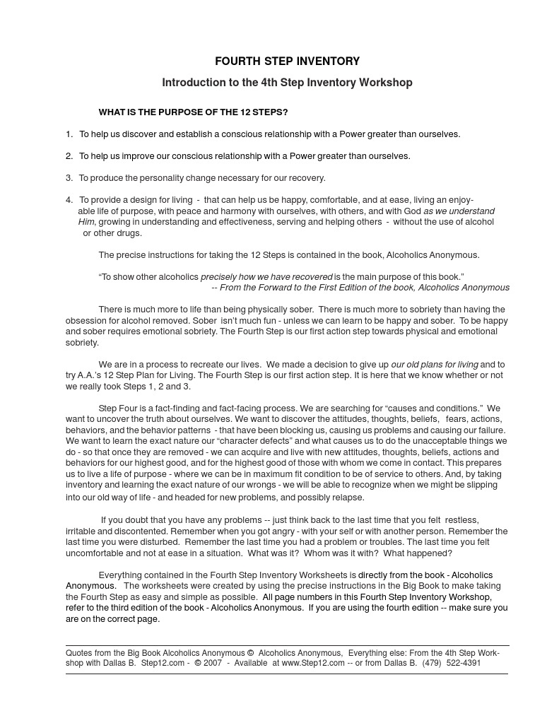 In conclusion, the Alcoholics Anonymous 4th step worksheet is a crucial part of the recovery process for individuals struggling with alcohol addiction. By completing this worksheet, individuals can take a deep look at their past behaviors and relationships, identify character defects, and begin the process of making amends. This step is challenging but essential for growth and healing in the journey to sobriety.