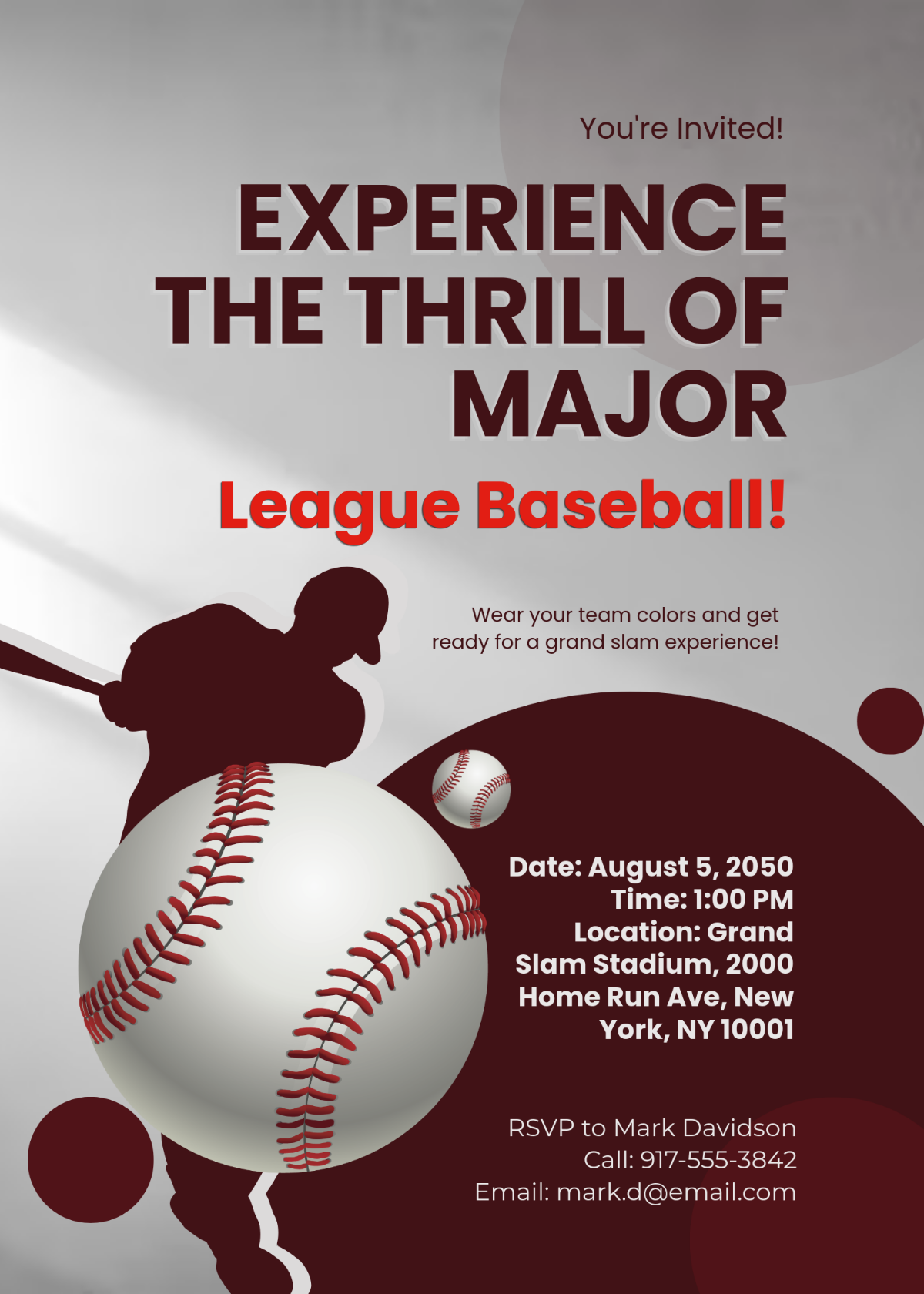 So whether you’re inviting friends, family, teammates, or colleagues to your baseball-themed event, make sure to check out these free invitation templates to make your event one to remember!