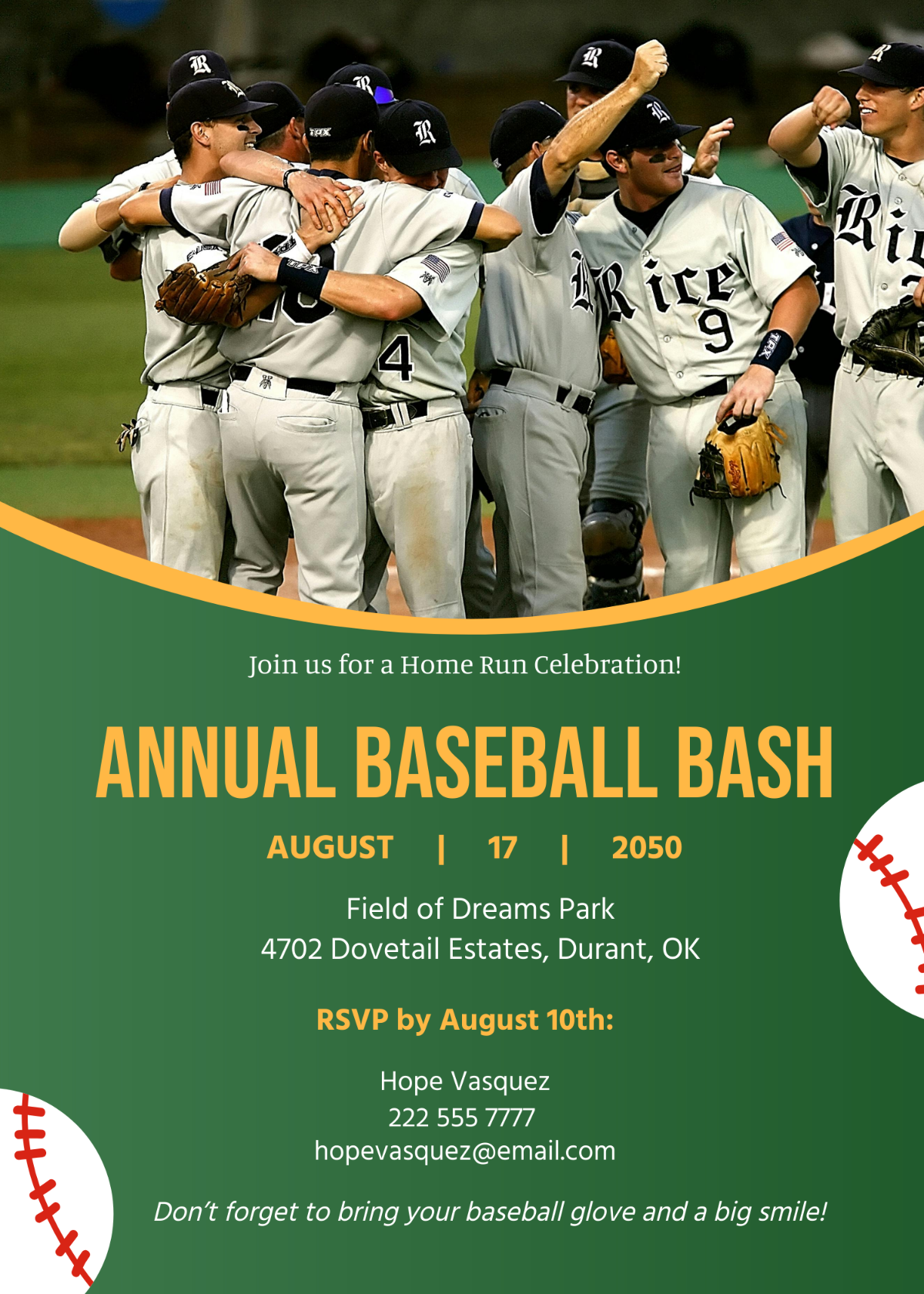 Our templates are perfect for all ages and occasions. Whether you’re throwing a baseball-themed party for kids or adults, our templates can be easily personalized to suit your needs. You can add photos, change the colors, and even include special instructions for your guests. With just a few clicks, you’ll have a professional-looking invitation that will impress your friends and family.