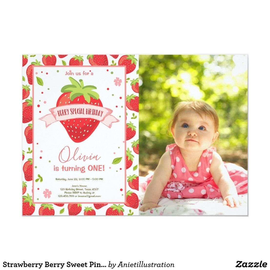 Berry First Birthday Invitation Mobile Strawberry Invitation Etsy