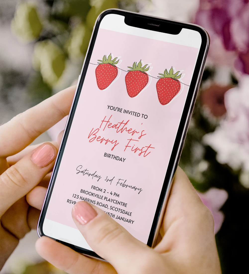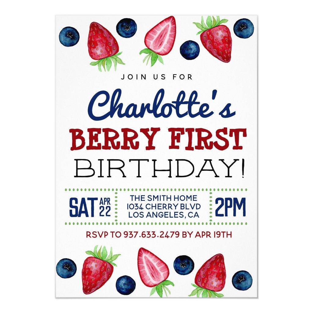 Berry First Birthday Invitation Mobile Strawberry Invitation Etsy
