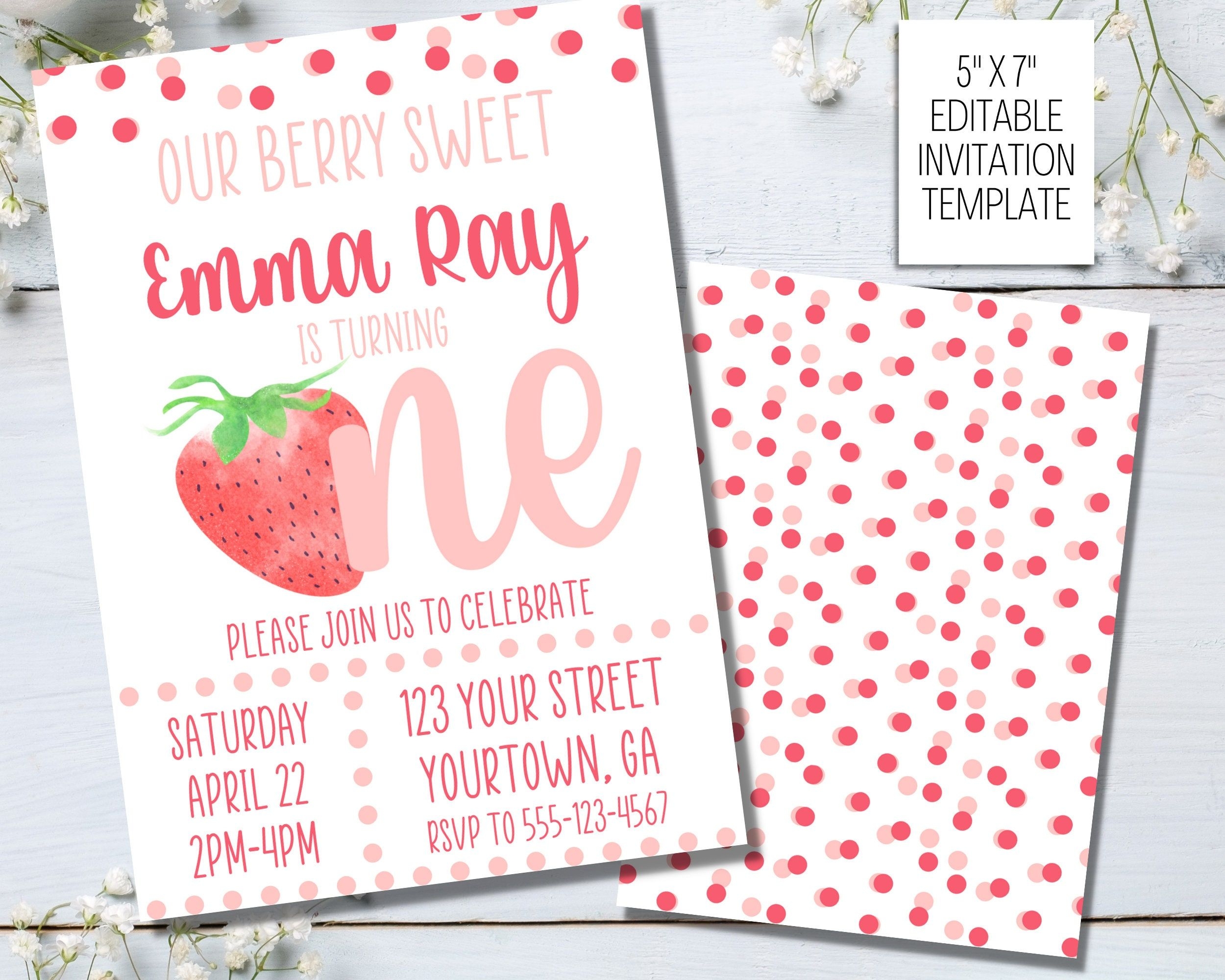 EDITABLE Strawberry First Birthday Invitation Berry First Birthday