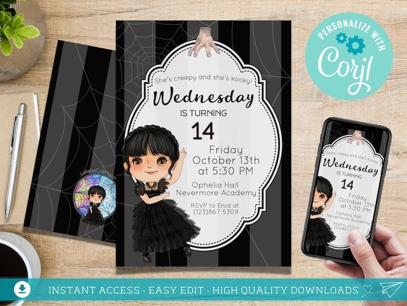 WEDNESDAY ADDAMS Inspired Birthday Invitation Addams Family Birthday