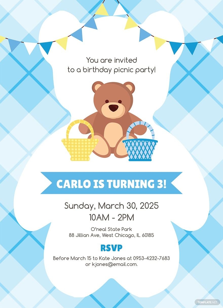 Teddy Bear Picnic Birthday Invitation Template In Illustrator