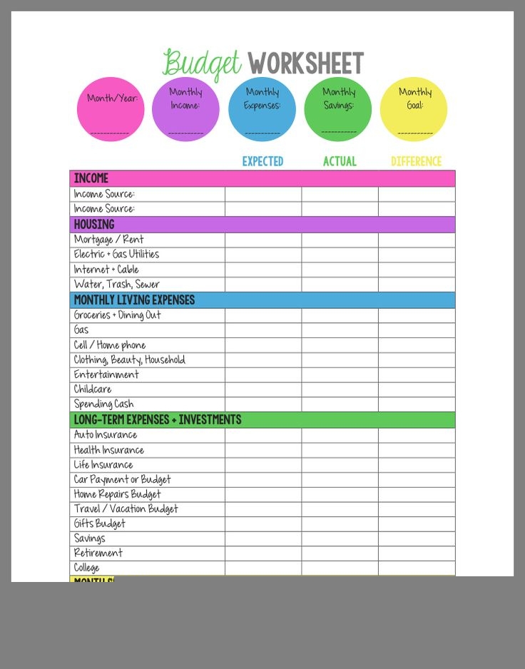 Budgeting Worksheets PDF