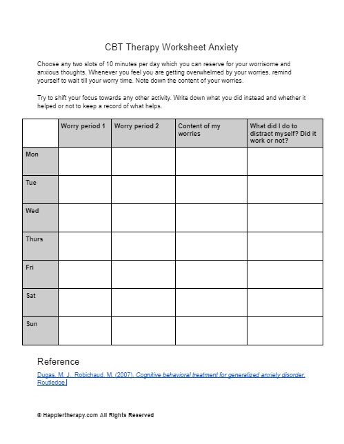 Here are some examples of CBT worksheets that can be beneficial for managing anxiety: