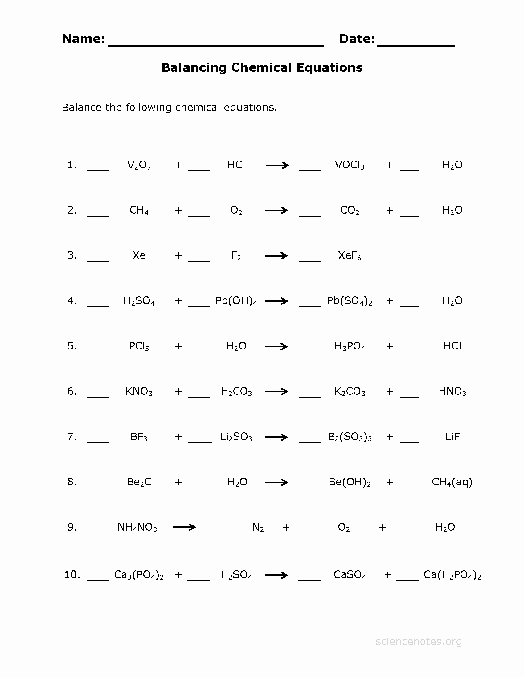 One way for students to practice balancing equations is through worksheets. These worksheets provide a series of chemical equations that students must balance by adjusting the coefficients of the compounds. Once students have balanced the equations, they can check their answers to ensure accuracy.