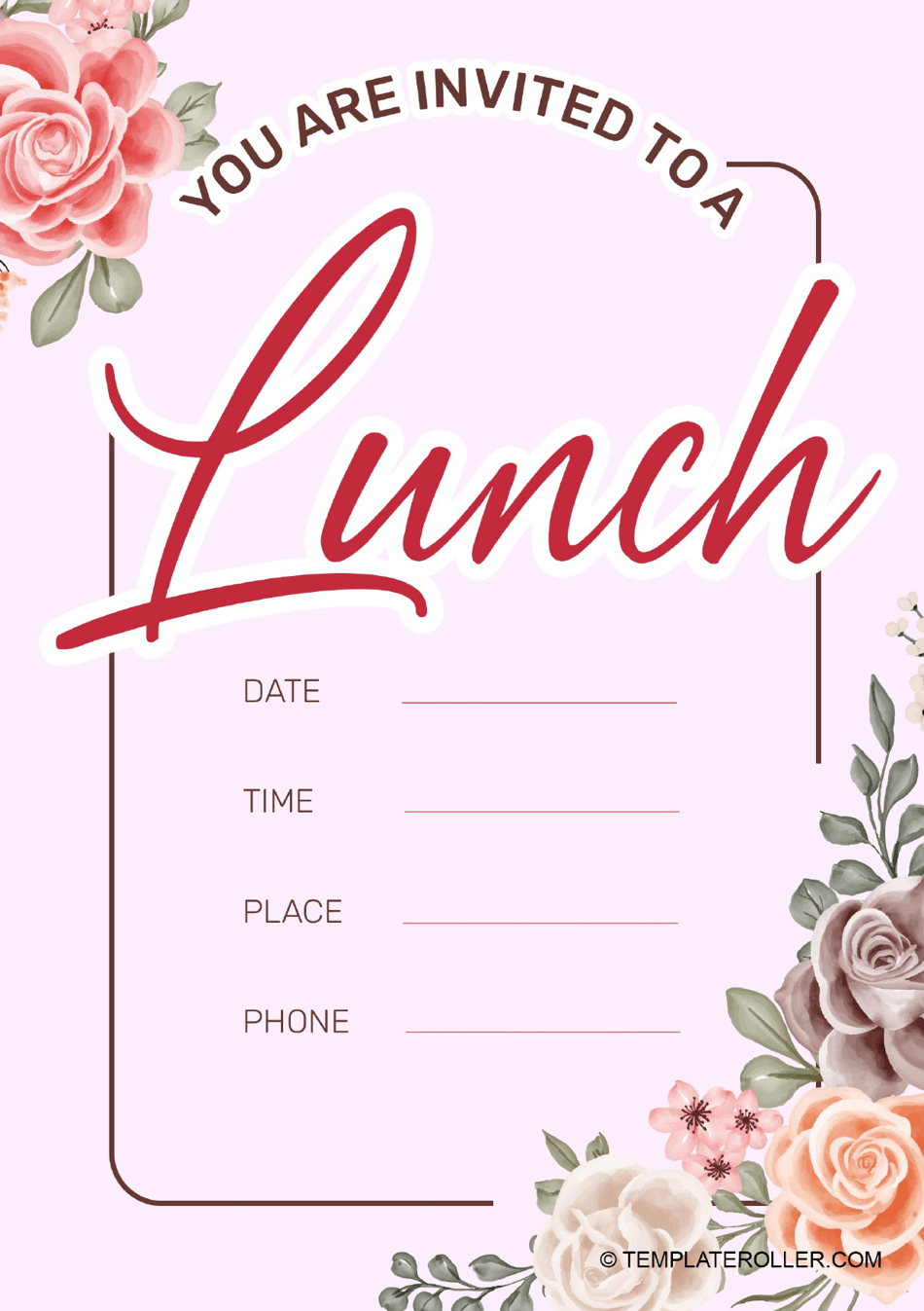 Lunch Invitation Template Pink Download Printable PDF Templateroller