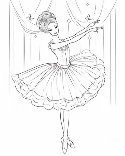 Coloring pages featuring ballet dancers can range from simple outlines to more intricate designs, allowing children and adults alike to express their creativity and imagination. These pages often showcase dancers in various poses and costumes, capturing the elegance and fluidity of ballet movements.