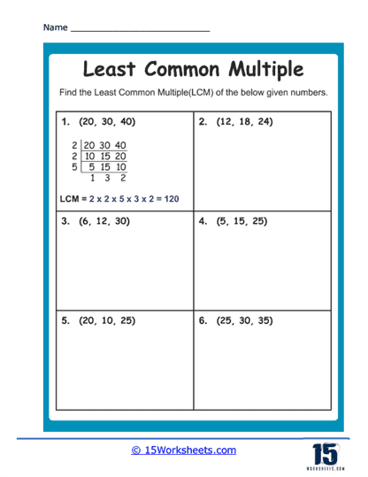 One common type of question found on a multiples worksheet is to find the least common multiple (LCM) of two or more numbers. The LCM is the smallest multiple that two or more numbers have in common. By practicing finding the LCM on a worksheet, students can improve their skills in finding common multiples and applying that knowledge to solve problems. These worksheets can also include questions that involve finding multiples of a single number or comparing the multiples of different numbers.