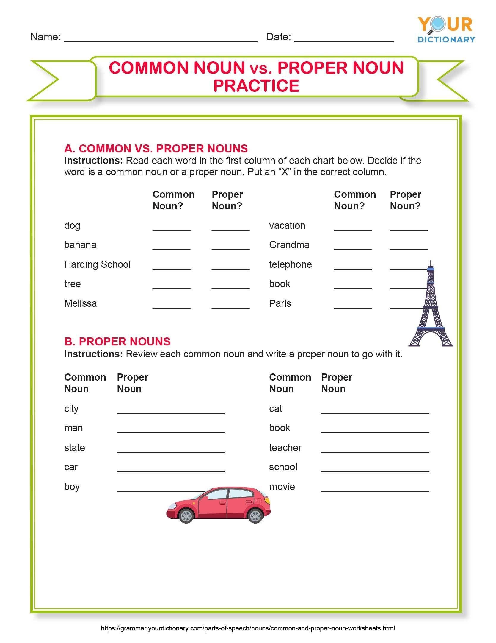 Students can also be tasked with creating their own sentences using common and proper nouns. This exercise allows them to practice applying their understanding of these two types of nouns in context. For example, students may be asked to write a sentence using a common noun like “car” and a proper noun like “Ford Mustang.”