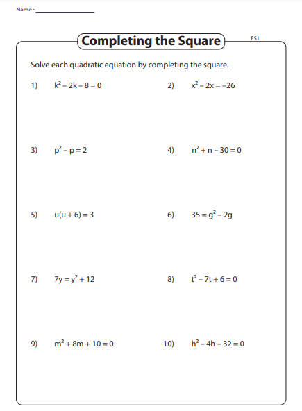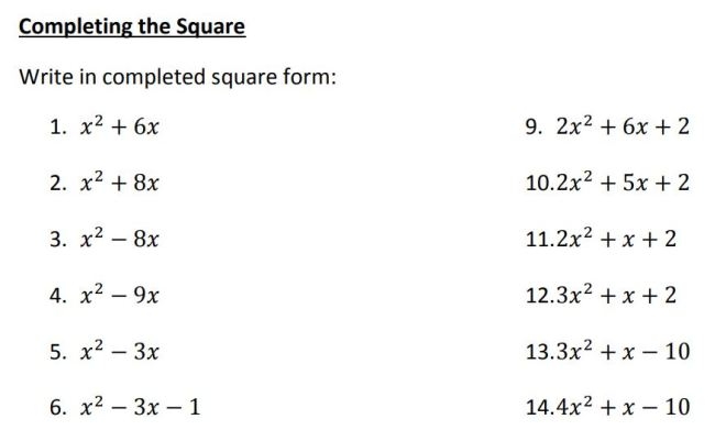 Completing Square Worksheet