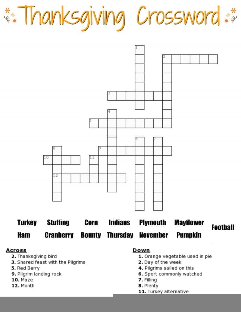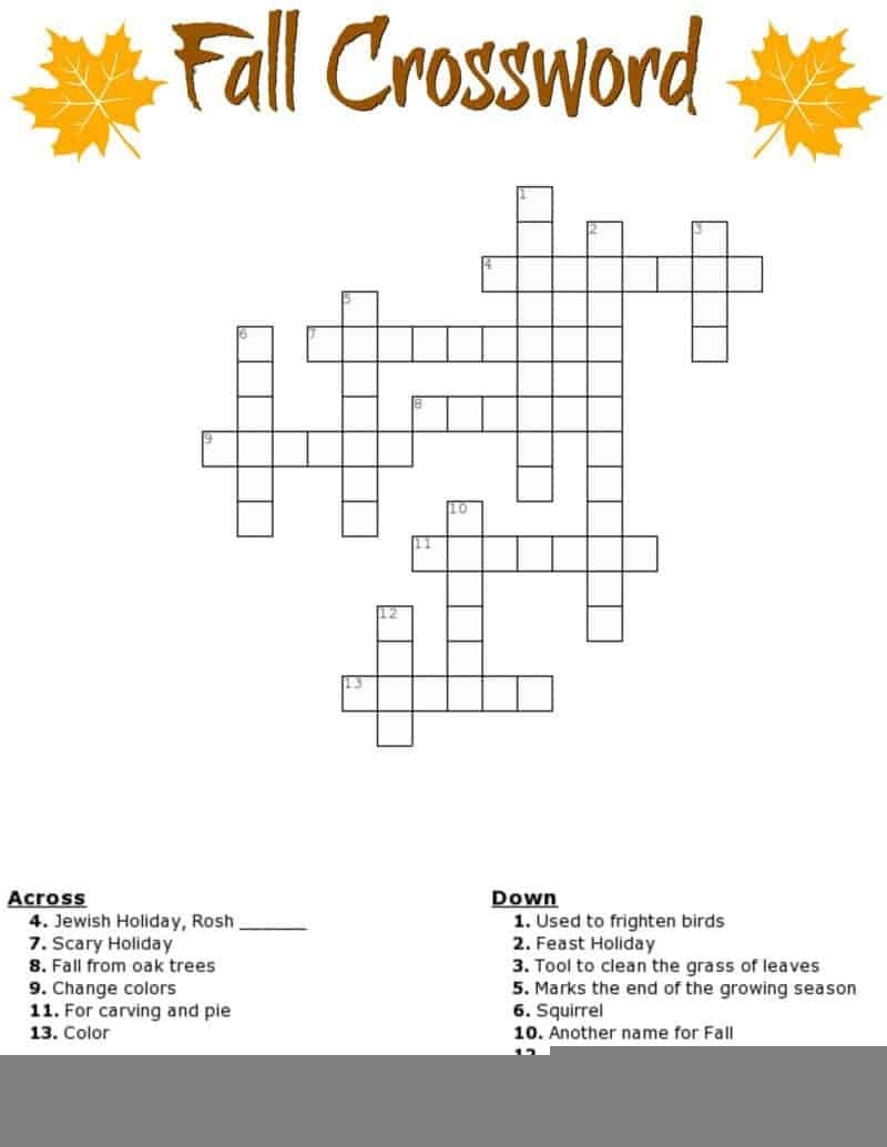 Crossword Puzzles with Word Bank Printable