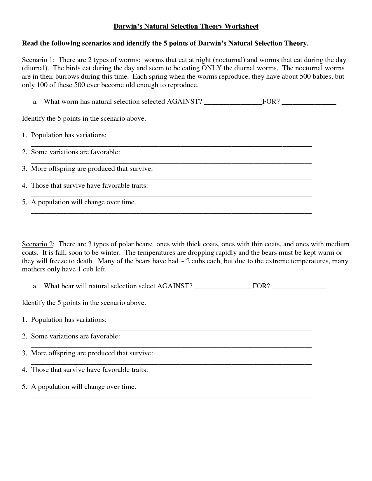 One common type of worksheet on Darwin’s natural selection involves scenarios where students are asked to analyze different populations of organisms and determine which traits are more likely to be passed on to future generations. By considering factors such as genetic variation, competition for resources, and environmental changes, students can see how natural selection can drive the evolution of species over time.