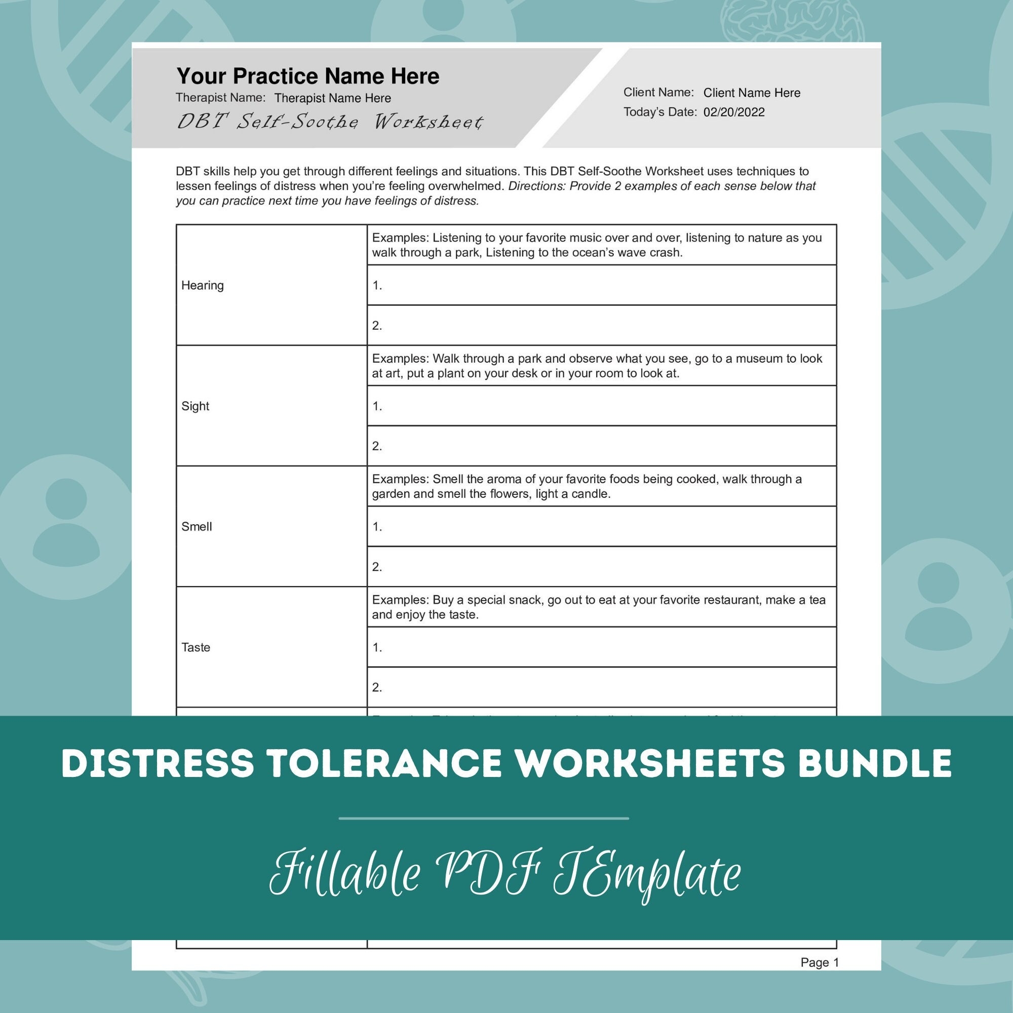Distress Tolerance Worksheets Bundle PDF Templates TherapyByPro