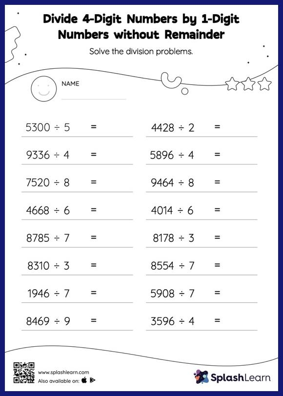 When dividing numbers, students need to understand the concepts of division, such as the dividend, divisor, quotient, and remainder. Division worksheets for 4th graders often include problems that require students to divide two or three-digit numbers by one-digit numbers, as well as word problems that involve real-life scenarios.