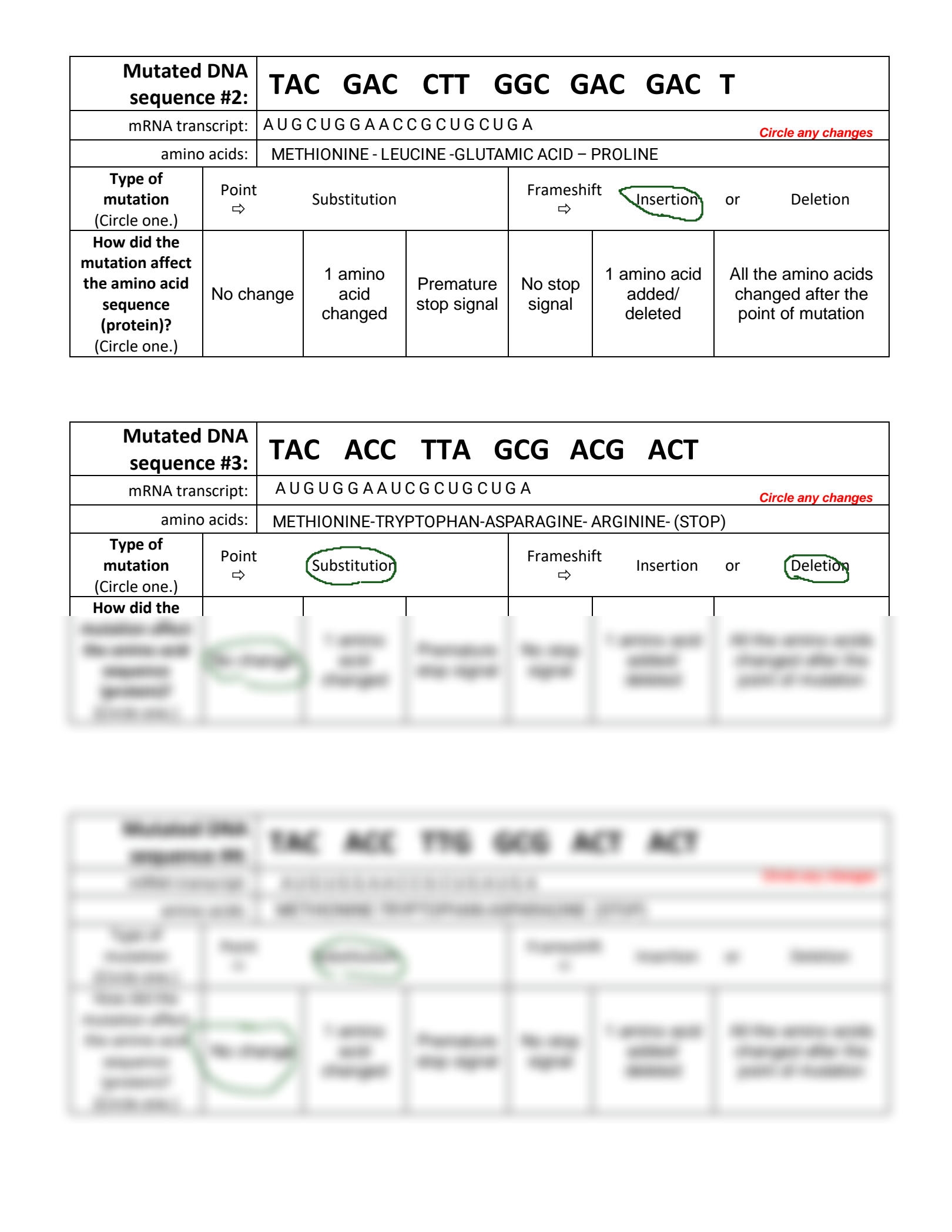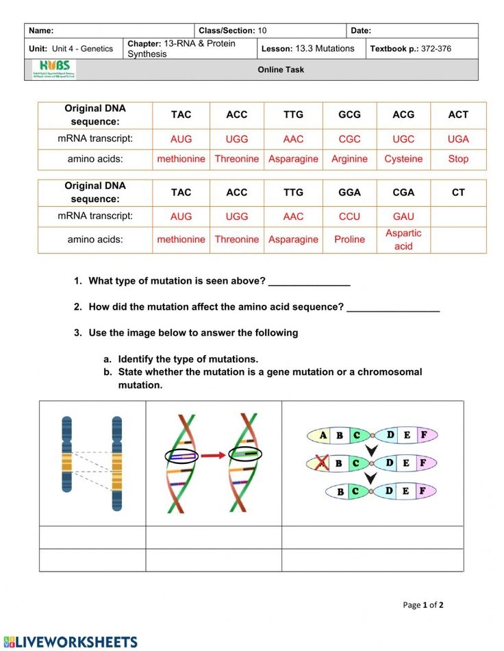 DNA Mutations Practice Worksheet