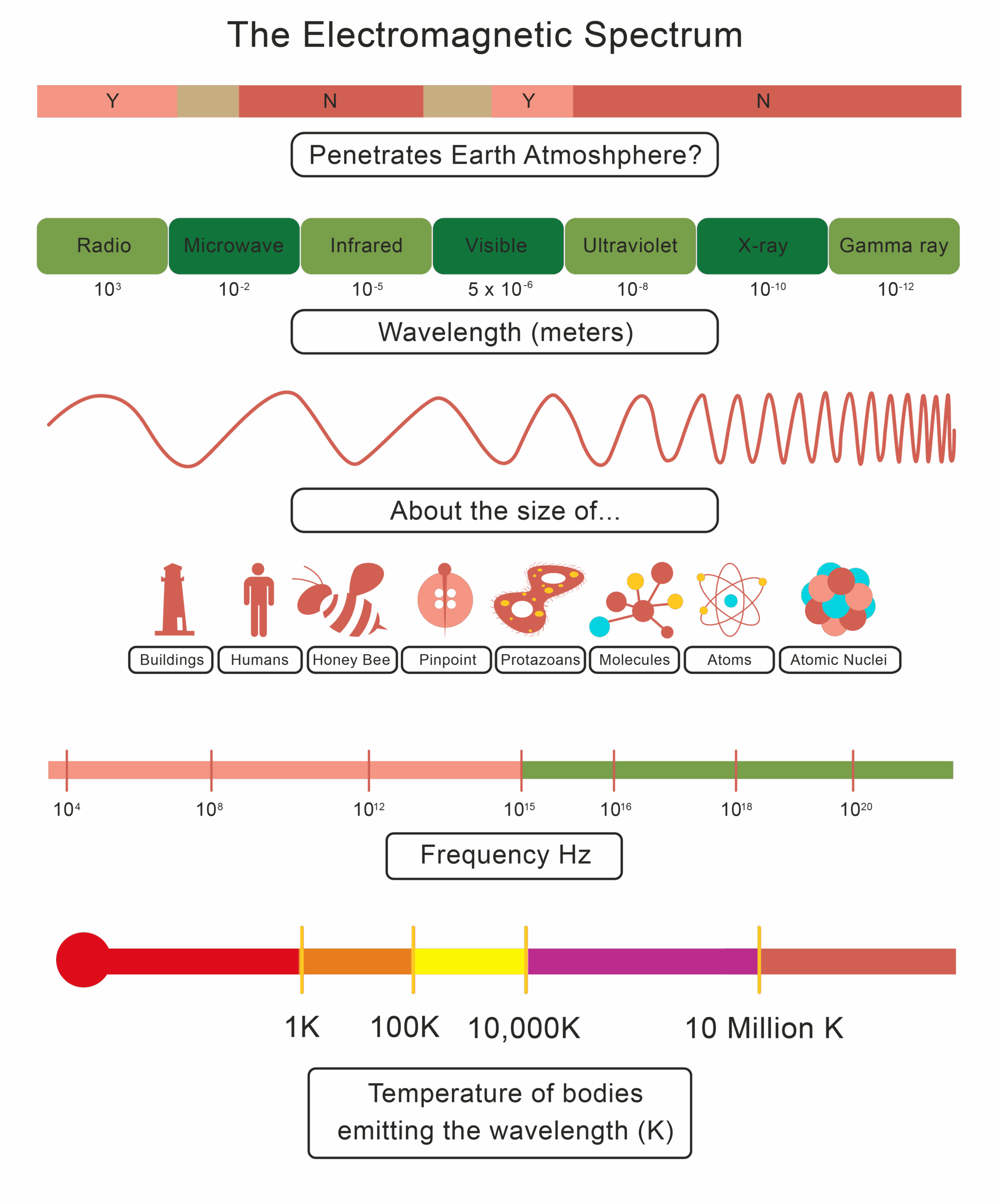 One common type of worksheet on the electromagnetic spectrum might include questions that ask students to categorize different types of waves, such as radio waves, microwaves, infrared, visible light, ultraviolet, x-rays, and gamma rays. Students may be asked to identify the properties of each type of wave, such as their frequency range, wavelength, and common uses.
