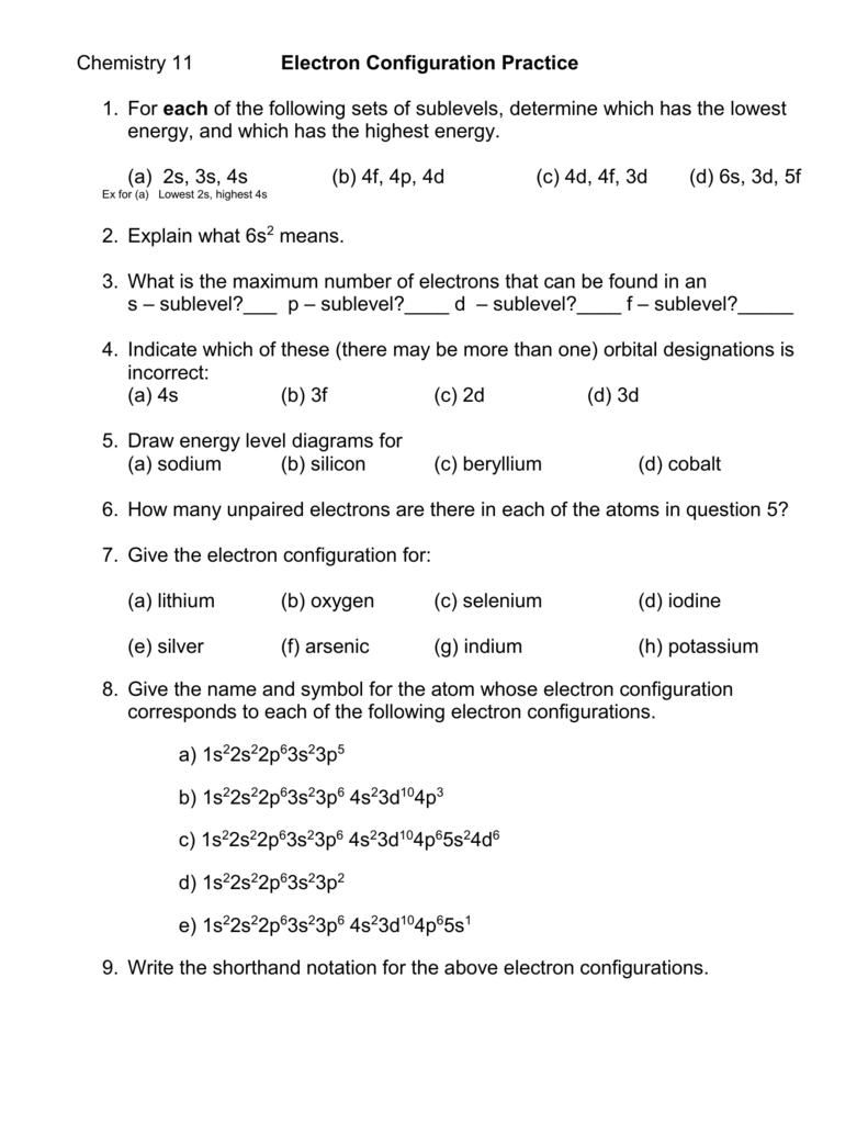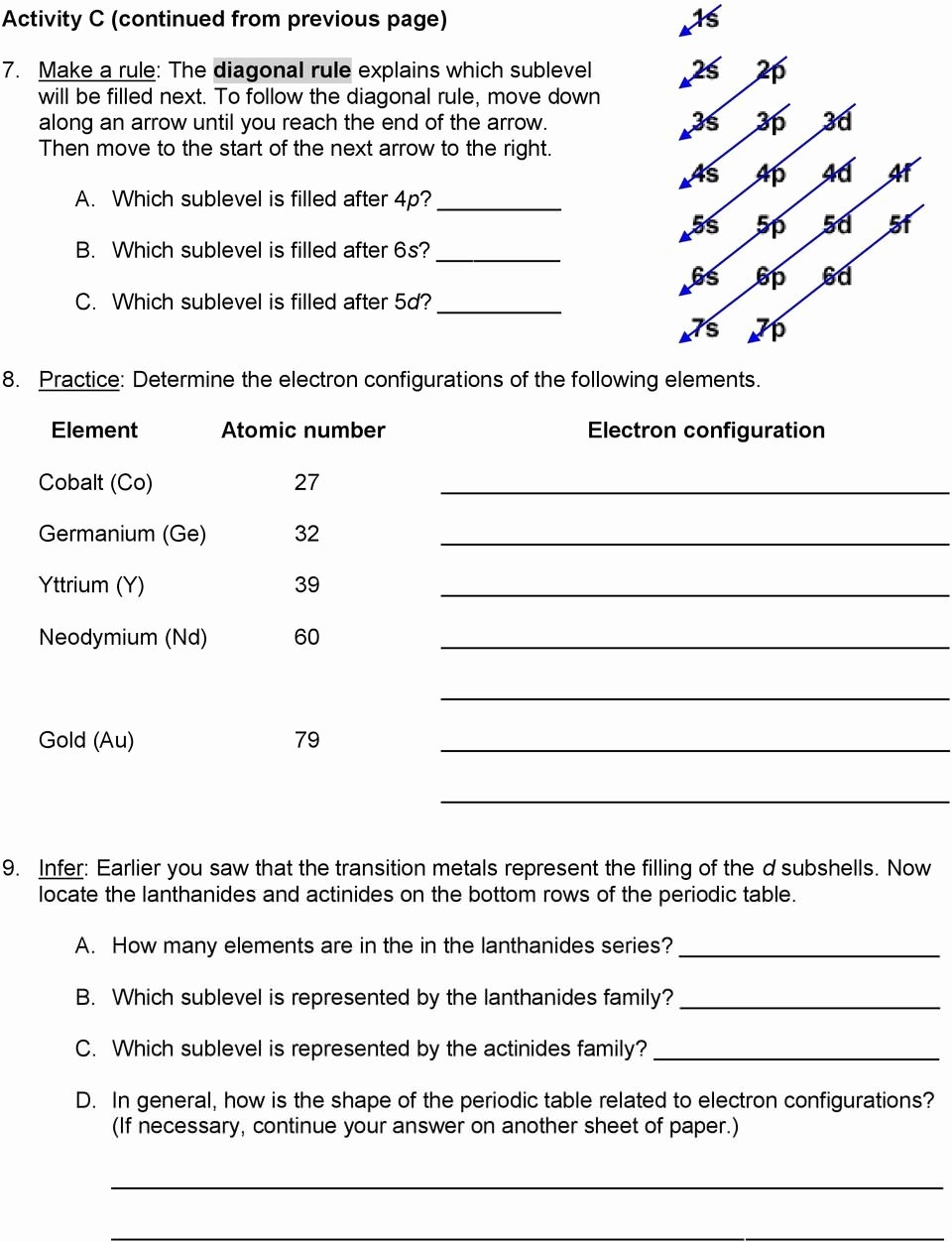 One effective way to practice electron configuration is through worksheets. These worksheets provide exercises and problems for students to solve, helping them master the concept and apply it to different elements. By practicing with a worksheet, students can test their knowledge and identify areas where they may need additional help.