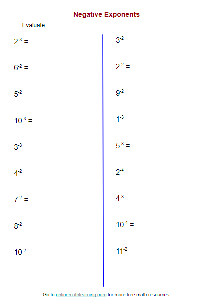 Exponent worksheets also allow you to track your progress and identify areas where you may need additional practice or support. You can use these worksheets to gauge your mastery of exponent rules and concepts, and to pinpoint any areas of weakness that you can focus on improving.