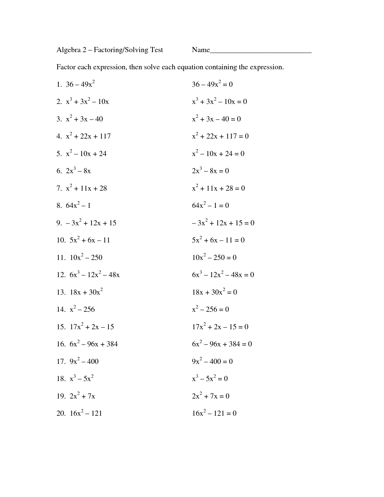 Download and Print factoring worksheets Listed below