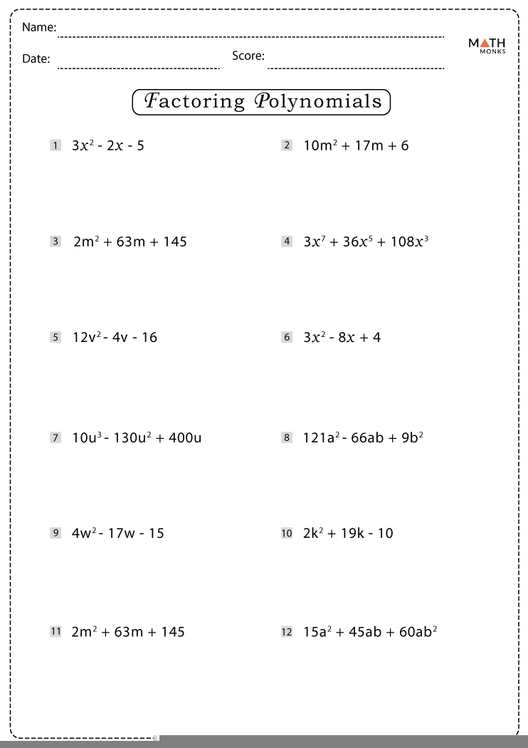 Furthermore, factoring worksheets can be tailored to suit students at different levels of proficiency. From beginners to advanced learners, there are worksheets available to challenge and support students at every stage of their math education.