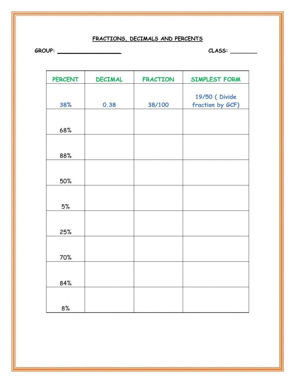 Fraction Decimal Worksheet