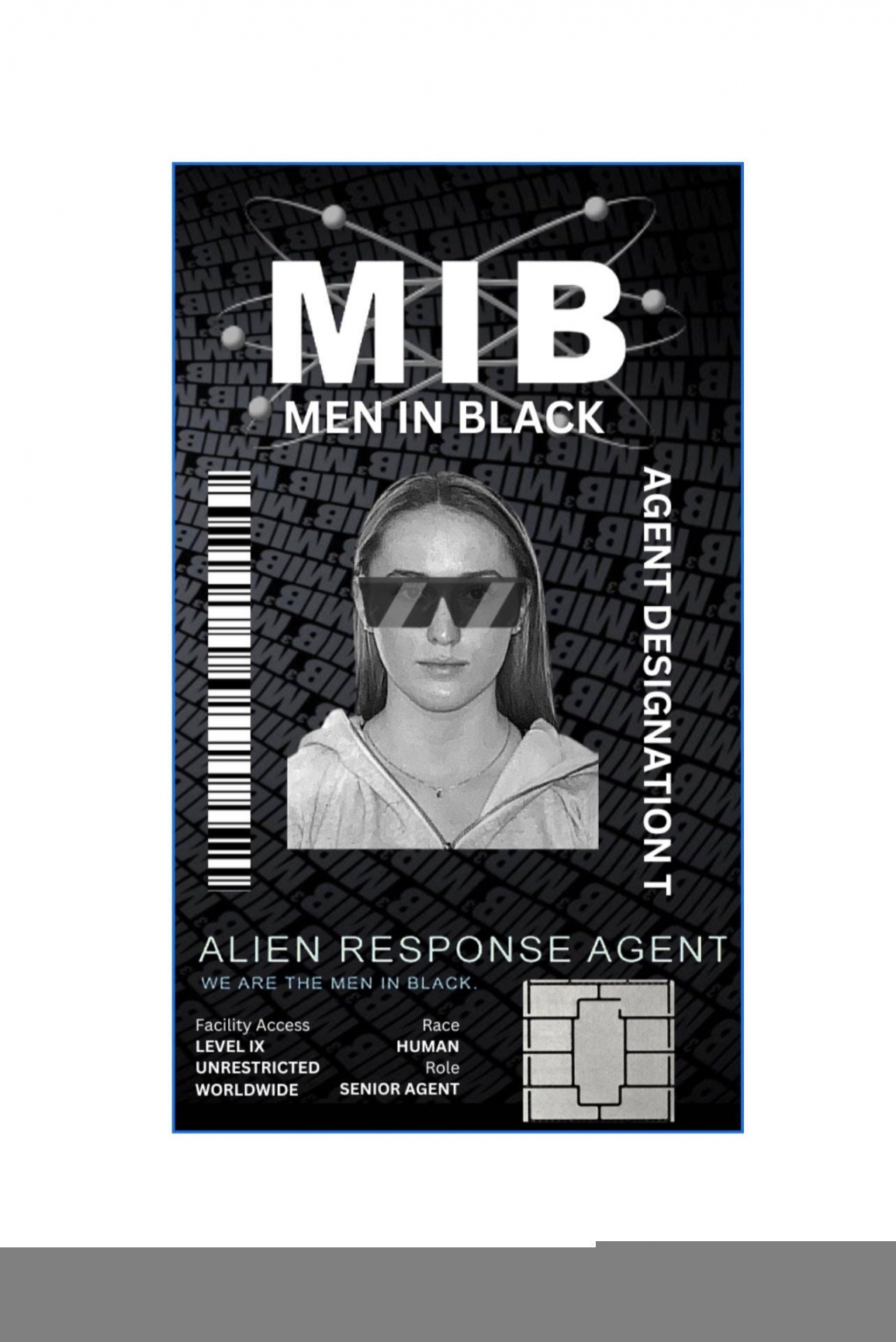 Our MIB badge template features the iconic black and silver design of the Men in Black agency. The badge includes the classic MIB logo, as well as space for your name and photo. You can print out as many copies of the template as you like, so you can create badges for all your friends and family members.