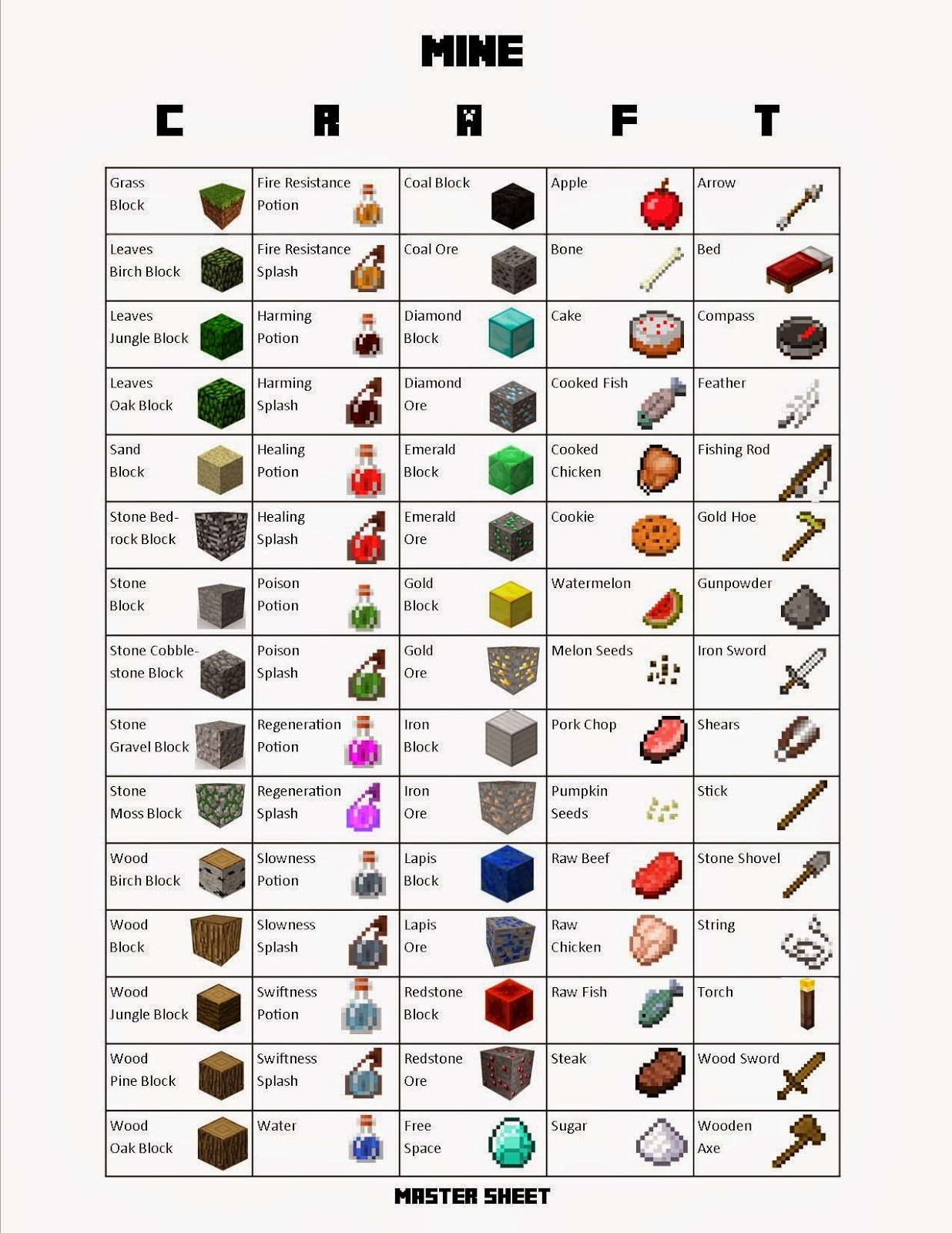Free Printable Minecraft Bingo Cards