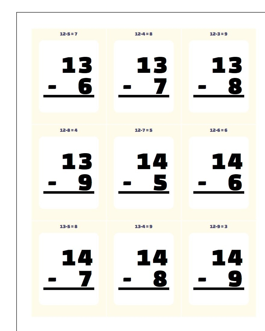 Free Printable Subtraction Flash Cards Pdf