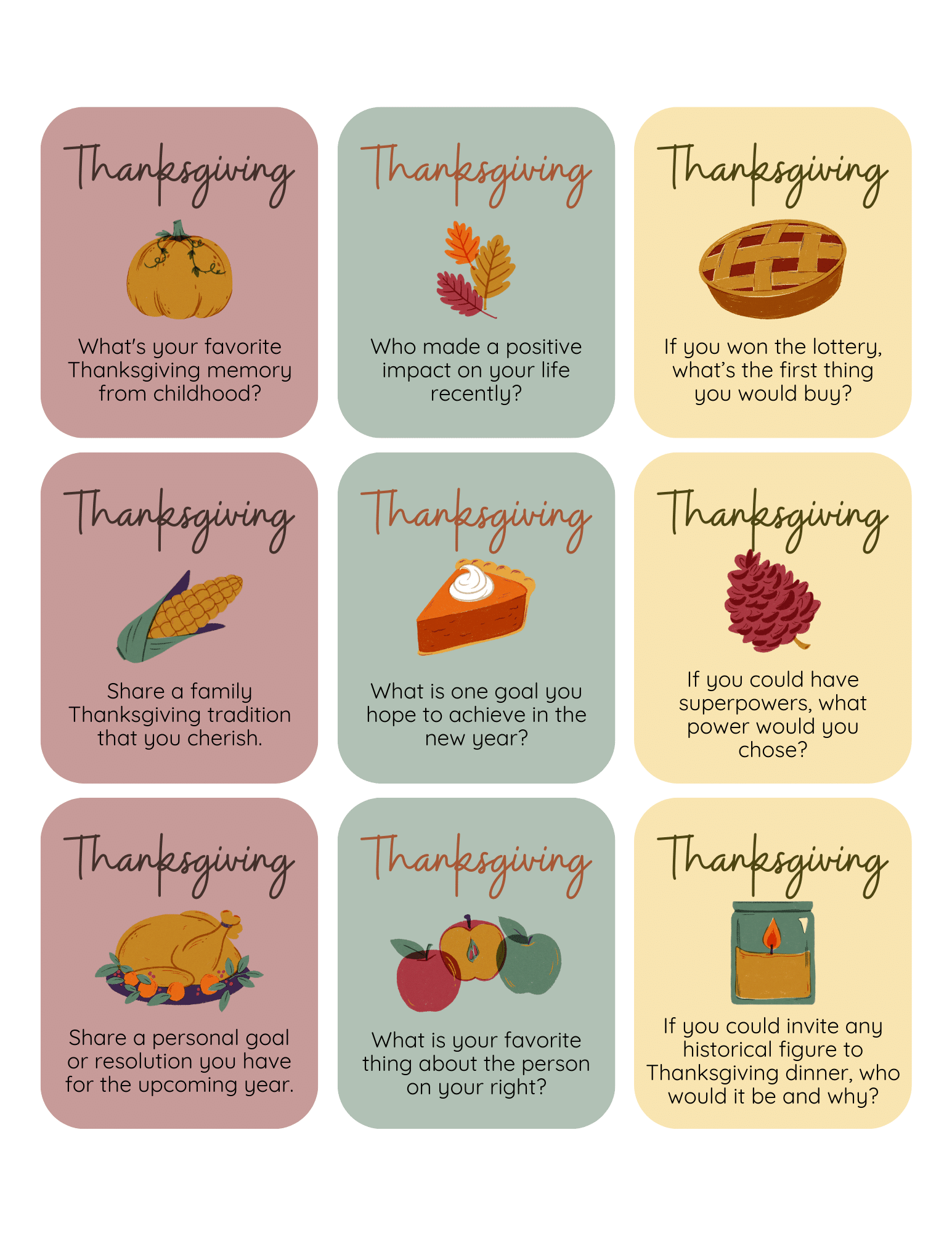 Free Printable Thanksgiving Conversation Cards Download and Print free printable thanksgiving conversation cards Listed below