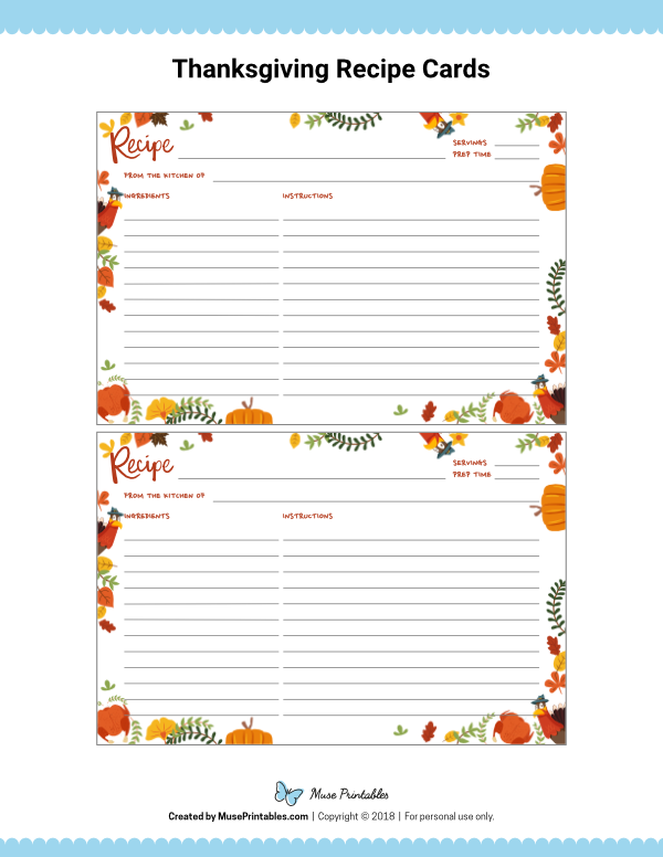 Free Printable Thanksgiving Recipe Cards Download and Print free printable thanksgiving recipe cards Listed below