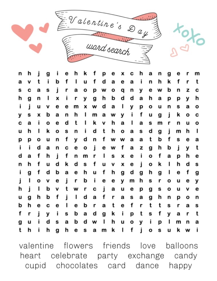 1. Valentine Word Search: Keep your students entertained while helping them improve their vocabulary with a Valentine-themed word search. They can search for words like “love,” “heart,” “cupid,” and more in this fun and festive activity.