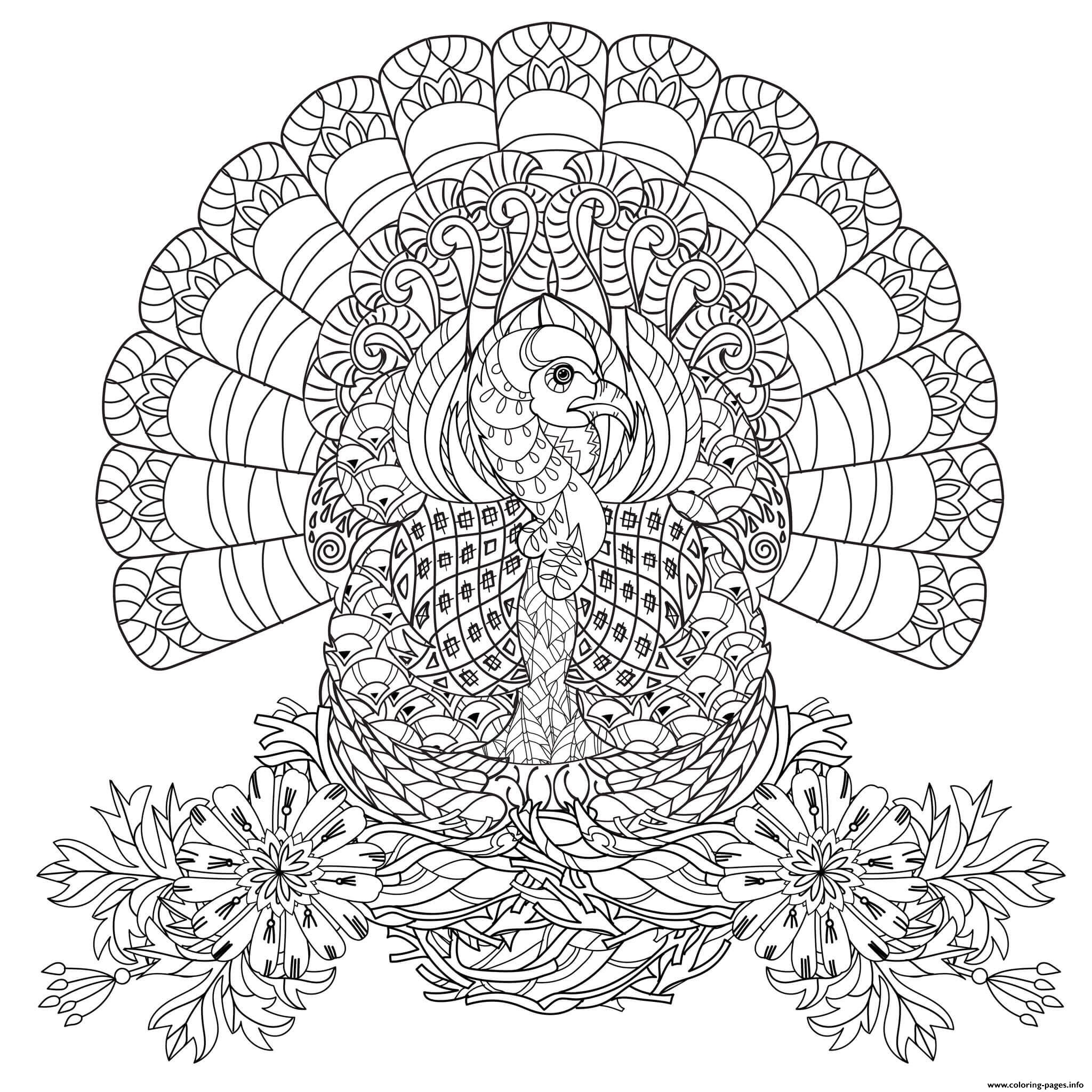 Turkey Zentangle Coloring Sheet Thanksgiving Adult Coloring Pages