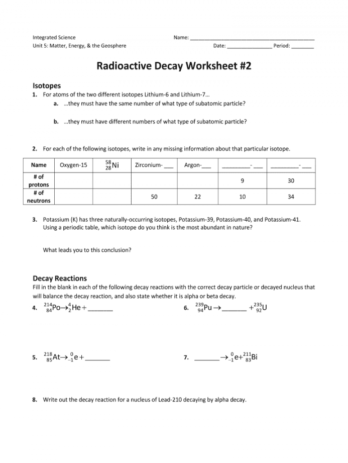 Furthermore, decay practice worksheets enable students to apply the concepts of decay to real-world scenarios. By solving problems related to radioactive decay, students can better grasp the implications of decay processes in fields such as medicine, environmental science, and nuclear energy.