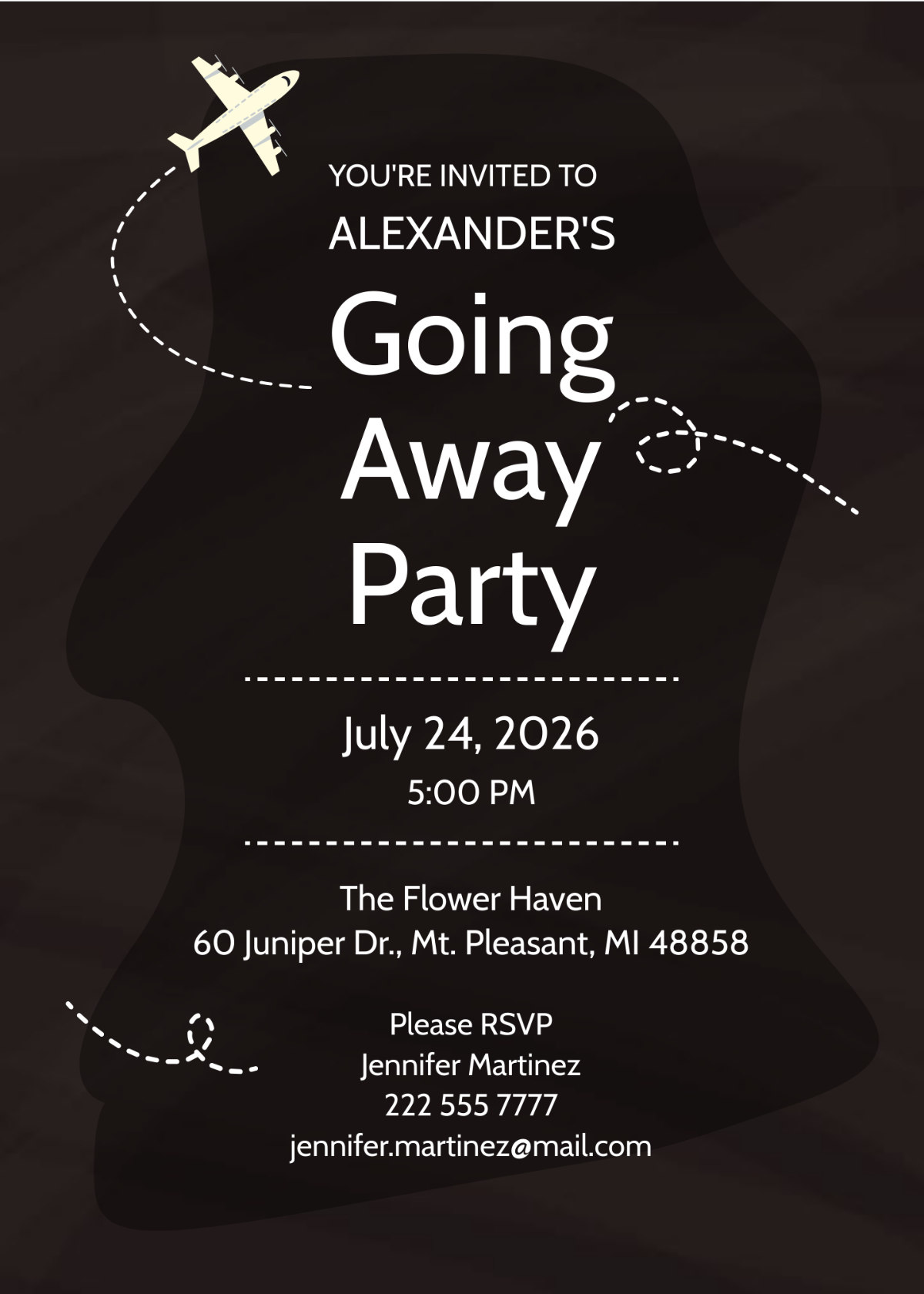 Whether you choose to send the invite via email, social media, or traditional mail, this template provides a simple and elegant way to invite guests to the going away party. Personalize it with your own touch to make it feel more special for the guest of honor.