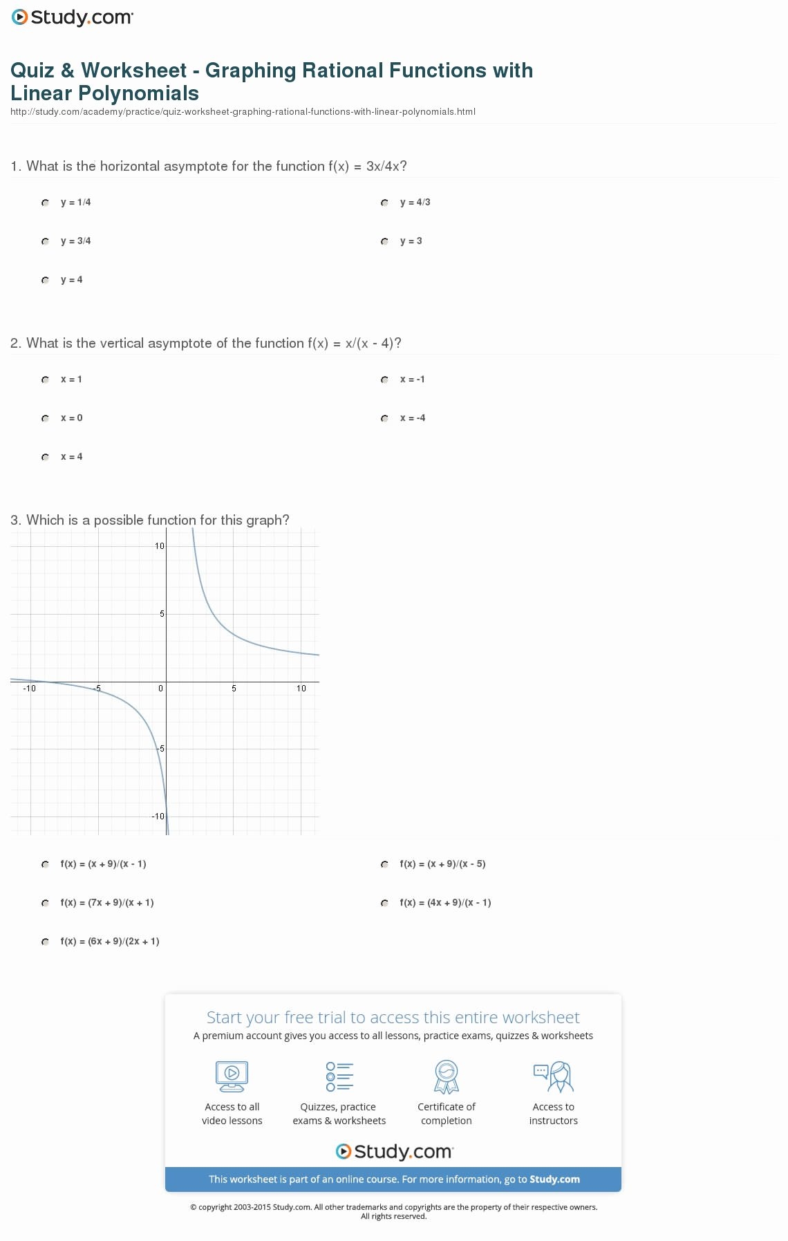 Rational functions are functions that can be expressed as a ratio of two polynomials. Graphing rational functions can be a challenging task, as they often have vertical asymptotes, horizontal asymptotes, and holes in their graphs. To help students practice graphing these types of functions, teachers often provide worksheets that contain various rational functions to graph.
