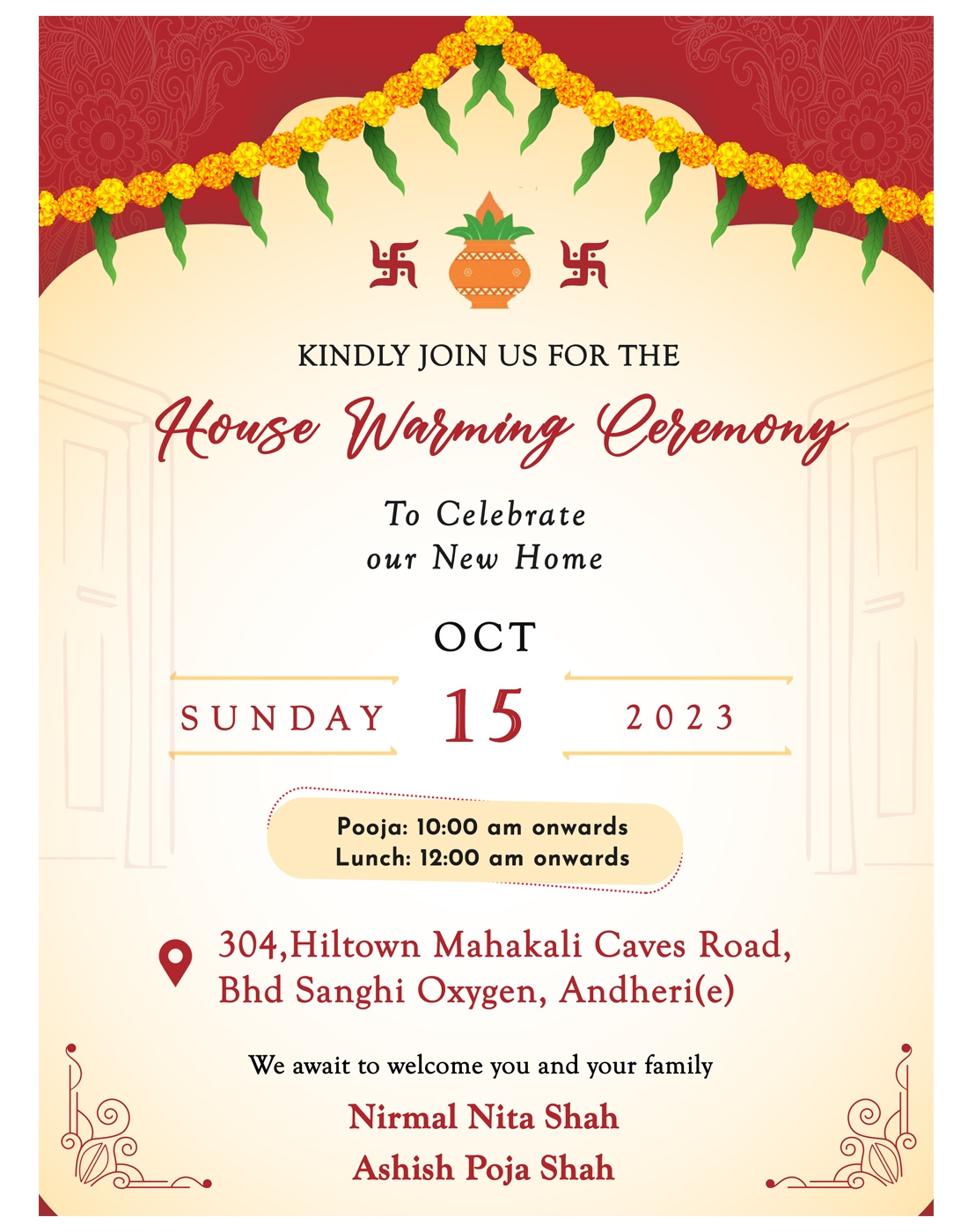 We can’t wait to celebrate with you and show you around our new home. Your presence will make our house warming party complete, and we look forward to creating new memories together. Thank you for being a part of this special moment in our lives!
