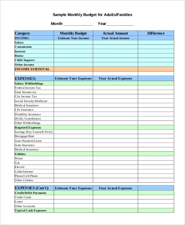 Download and Print household budget worksheet Listed below