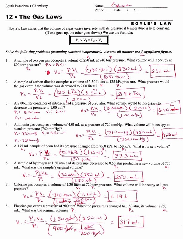 Gas Laws Worksheet PDF Gases Mole Unit Worksheets Library