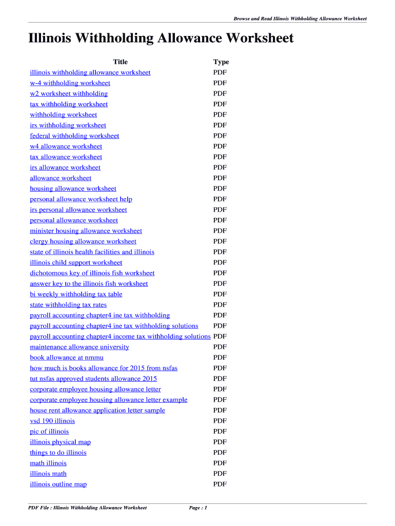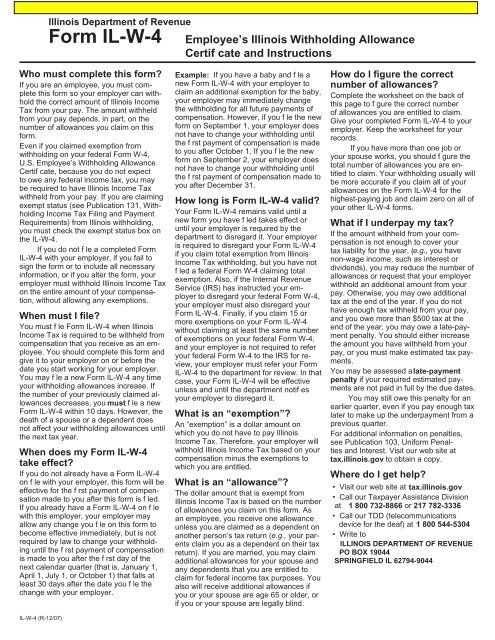 When it comes to calculating your state income tax withholdings in Illinois, it’s important to understand the Illinois Withholding Allowance Worksheet. This worksheet helps you determine how much state income tax should be withheld from your paycheck based on your filing status, number of allowances, and any additional withholding amounts you choose to specify.