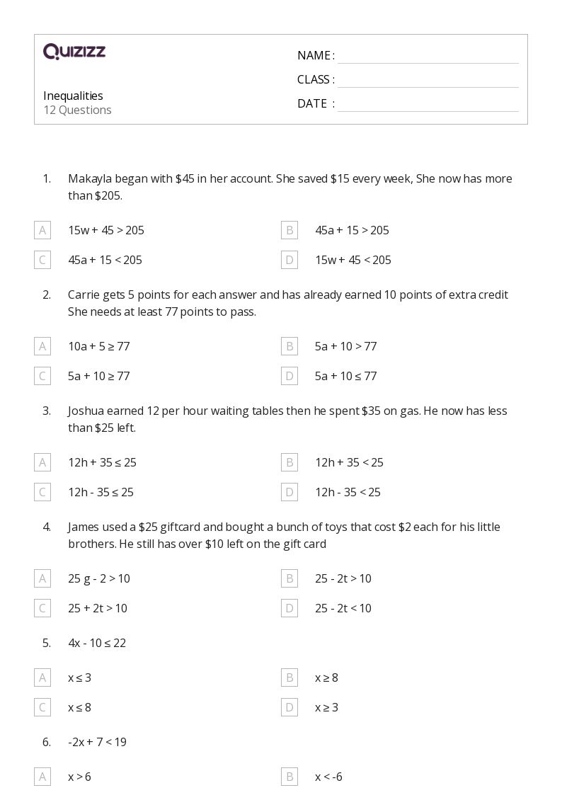 Inequality Worksheets Explore Engaging Exercises To Master Inequalities