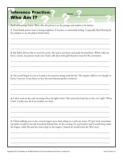 Enhance your students’ inference skills today with practice worksheets that challenge them to think critically, analyze text and visuals, and draw informed conclusions. With regular practice, students can become more proficient in making inferences and improve their overall reading comprehension abilities.