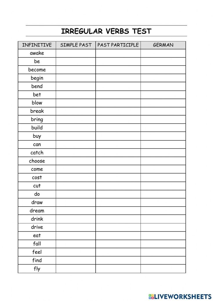 Irregular verbs worksheets typically contain a variety of exercises that focus on different aspects of irregular verbs, such as past tense, past participle, and present tense forms. These worksheets are designed to reinforce the correct usage of irregular verbs through repetition and practice, helping students become more confident in their language skills.